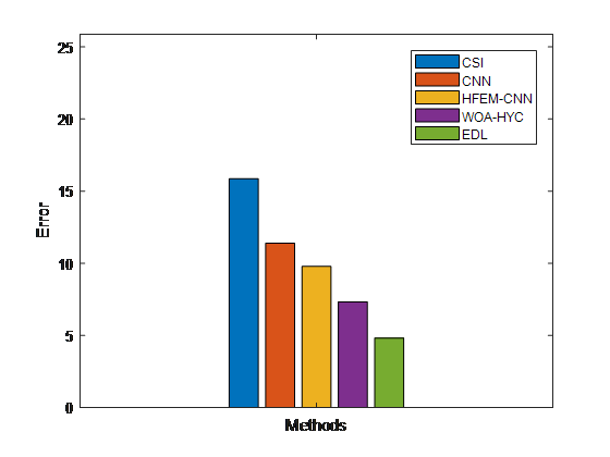Figure 9 compares the proposed and current fake news detection methods' error rate ratings. The suggested EDL technique beats the existing classification algorithms in terms of error rate, according to the results.