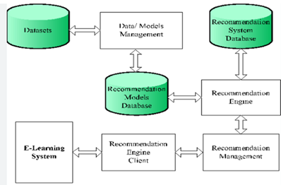 The use of recommendations systems is crucial in these circumstances. E-learning has benefits over the conventional teacher-centered learning method since it allows students to search and examine the learning target anytime, not just in class. It is constantly difficult for e-learning to study many knowledge items in a focused topic methodically and effectively because most learning content on the internet is scattered.(6) Figure 1 depicts recommender systems for e-learning.