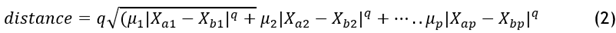 Where a = (xa1,xa2,...,xap) and b = (xb1,xb2,...,xbp) are data positions for two p-dimensional learners, and q > 0.