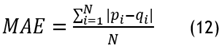 The MAE is calculated by summing together all the N’s errors, which are proportional to evaluating forecast matches and then determining normal value. The MAE measure is calculated as follows for each combination pi and qi of anticipated assessments pi and actual evaluations qi: