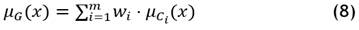 Where wij is the weight assigned to the sub-criterion Sij, and μ(Sij) (x) is the membership value for the subcriterion. The overall evaluation G is then aggregated from the criteria evaluations using: