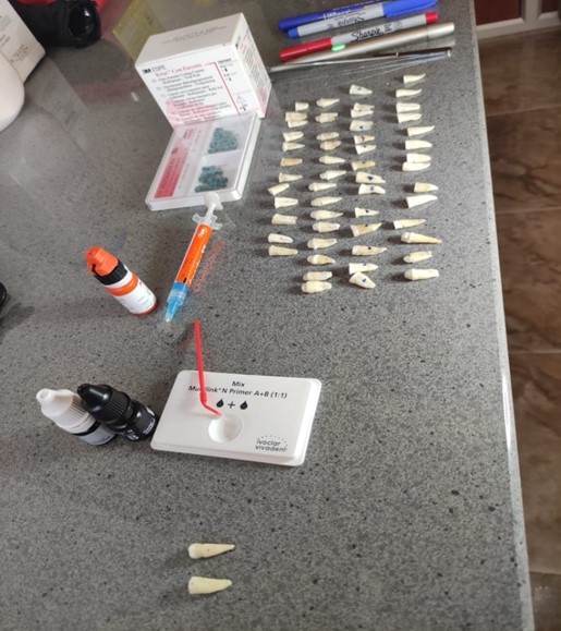 Keywords: Interdentinal Pins; Adhesive Systems; Tensile Strength; Failure Mode; Core Reconstruction.