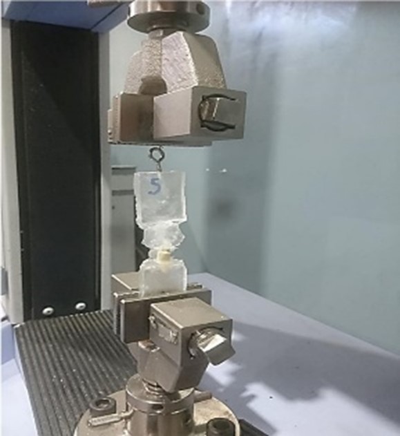 Se realizó el ensayo de tracción en la máquina universal de ensayo de la Escuela Politécnica Nacional, aplicando una fuerza a una velocidad de 1 mm/min. Los resultados se expresaron en Newtons y se realizó el análisis estadístico correspondiente.