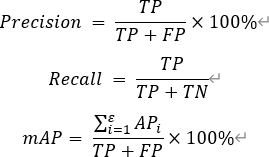 The performance evaluation indexes adopted by the training network in this experiment are mainly mAP (Mean Average Precision), Precision (P) and Recall (R), which are calculated by the following formula. In this paper, to detect the target face-mask wearing a mask, TP (True Positive) represents the number of faces wearing a mask correctly identified by the mask wearing detection algorithm as face-mask. The FP stands for False Positive. It shows the number of faces that the algorithm for detecting masks incorrectly identifies as having masks. The value of FN indicates the number of faces whose masks are recognized by the algorithm as the face without masks. The average accuracy of all categories is the average accuracy mAP.