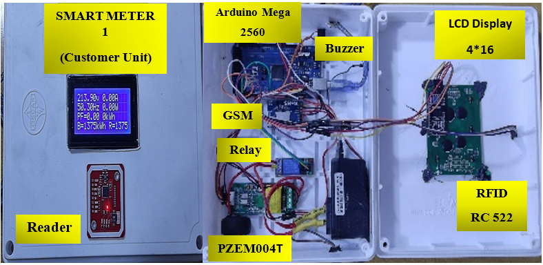 As previously mentioned, the consumer unit in the proposed system, which refers to the smart meter for the consumer, consists of several components. This unit is practically implemented using simple and low-cost components, as shown in the figure 5. The consumer unit was programmed using the C/C++ programming language.