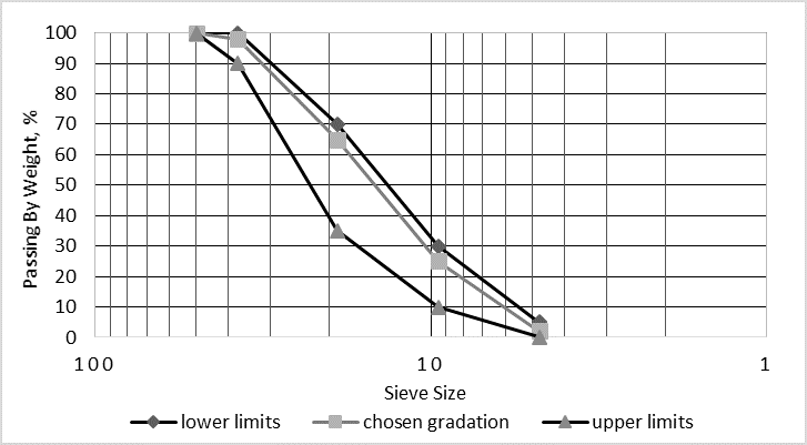 In this paper, crushed gravel sourced from the Al-Nibaai quarry has been utilized. Employing a sieve analysis apparatus, the coarse aggregate has been sorted into different size fractions to align with the optimal gradation, as detailed visually represented in figure 2. Subsequently, the aggregate has been thoroughly cleansed using water and subsequently subjected to air drying.
