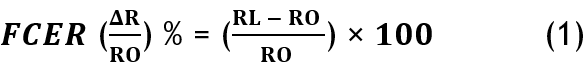The variables FCER, RL, and RO represent fractional changes in electrical resistivity, electrical resistivity at a specified time under compression loading, and initial electrical resistivity, respectively.