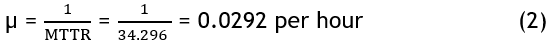 Mean Time To Repair (MTTR) for four years = ∑158 TTR (hour)/58 =34,296 hour (1)