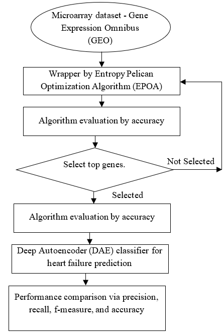 Keywords: Heart Failure (HF); Dilated Cardiomyopathy (DCM); Entropy Pelican Optimization Algorithm (EPOA); Gene Expression Omnibus (GEO); Deep Autoencoder (DAE); FS (Feature Selection).