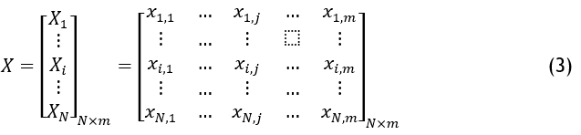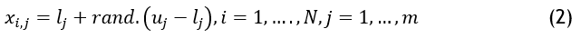 Where lj is the jth lower bound and uj is the jth upper bound of the problem feature, xi,j is the value of the jth feature delivered by the ith candidate solution, m express problem features numbers, N express population members numbers, Xi,j is a random number within the inteval [0, 1].